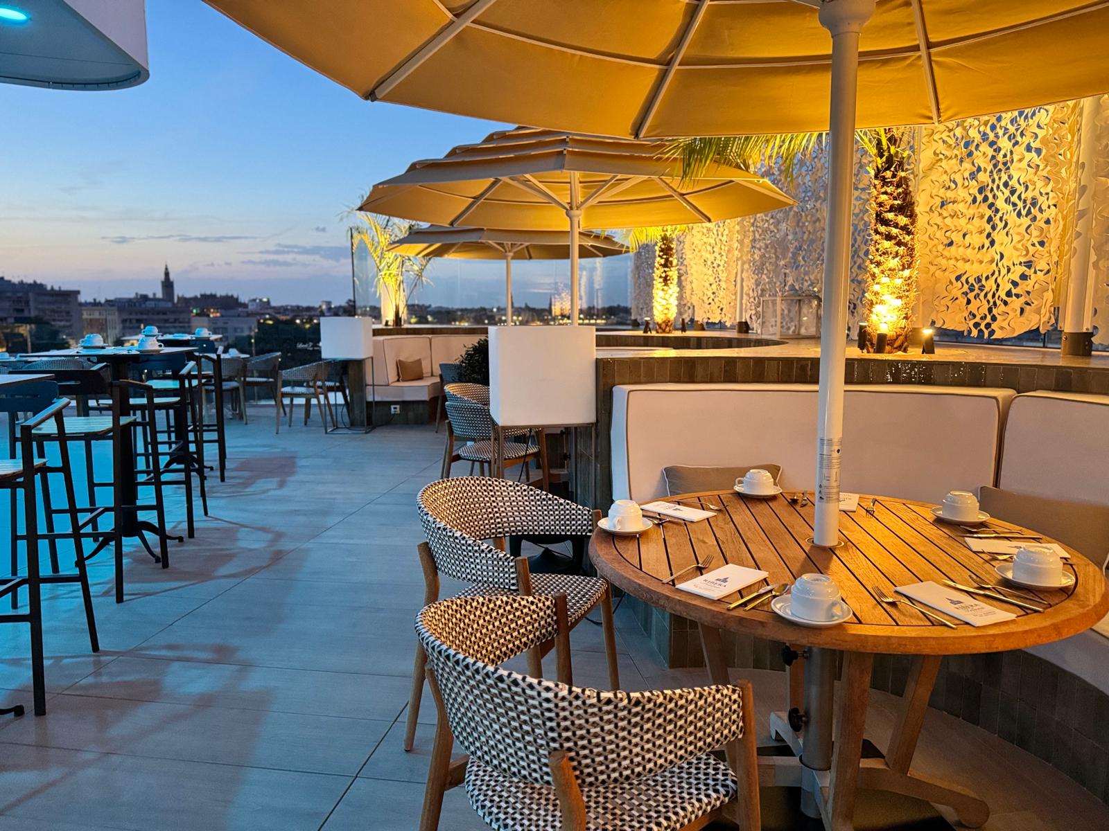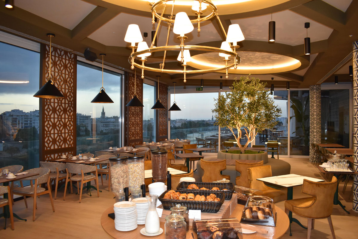 Nuestro buffet de desayunos está situado en el Rooftop del hotel donde podrá disfrutar de unas espectaculares vistas mientras disfruta de una amplia oferta gastronómica: bollería, pastas, cereales, frutas de temporada, zumos, ibéricos, patés, mantequillas, variedad de panes, elaborados calientes y fríos, show cooking, etc.